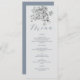 Présentez votre repas mariage avec style en utilisant cet élégant menu floral bleu poussiéreux. Des aquarelles douces aux tons argentés et une calligraphie gracieuse créent un look romantique et raffiné. Parfait pour les mariages d'hiver ou de minimalisme, ce menu ajoute une délicate touche de charme d'inspiration nature à votre cadre de table d'accueil.