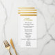 Menu de mariage élégant avec bandes de papier alu blanc et or. Personnalisez avec le texte de votre choix.