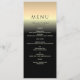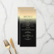 Menu de dîner de mariage moderne, élégant, minimaliste, luxe, chic or et noir avec une simple écriture calligraphique.