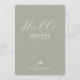 Accueillez vos invités de manière réfléchie et élégante avec ce carton double usage servant de marque de table et de menu de la collection de mariage Two Are Better Than One. Le recto présente un fond vert sauge doux avec une salutation chaleureuse qui commence par « Bonjour » suivi du nom de l'invité, faisant en sorte que chaque participant se sente personnellement invité à votre célébration.