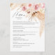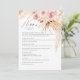 Menu de dîner de mariage floral bohème aquarelle avec herbe de Pampas. Beau motif de fleurs botaniques rose blush au dos de la carte. Cette carte de dîner de mariage est un choix parfait pour être placée sur l'assiette de mariage pour un mariage sur le thème bohème.