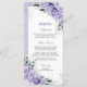 Personnalisez facilement et rapidement ce menu mince et argenté à fleurs de lilas violet double face avec des roses lavande, en cliquant simplement sur le bouton Modifier à l'aide des outils de conception pour modifier encore le texte, la formulation, le style de police, la taille de police, la couleur de police, ajouter plus de texte, déplacer ou supprimer certaines images. Personnalisez-le pour l'adapter à votre occasion. Parfait pour les mariages, les douches de mariée, les Quinceañeras, les 16 ans, les 18 ans, les Bat Mitzvah, les bals de débutante, les baptêmes et plus encore ! Articles assortis disponibles en magasin ! (c) Ever After Wedding