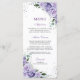 Personnalisez facilement et rapidement ce modèle de carte de menu mince en argent avec fleurs de lilas violet et roses lavande recto-verso, en cliquant simplement sur le bouton Modifier à l'aide des outils de conception pour modifier le texte, la formulation, le style de police, la taille de police, la couleur de police, ajouter plus de texte, déplacer ou supprimer des images. Personnalisez-le pour l'adapter à votre occasion. Parfait pour les mariages, les douches de mariée, les Quinceañeras, les 16 ans, les 18 ans, les Bat Mitzvah, les bals de débutante, les baptêmes et plus encore ! Articles assortis disponibles en magasin ! (c) Ever After Wedding