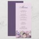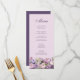 Élevez votre réception de mariage avec notre menu de mariage floral lilas boho enchanteur. Cette carte de menu exquise présente un design charmant orné de pivoines lilas clair, créant une atmosphère fantaisiste et romantique pour votre célébration. Le motif floral inspiré du style bohème ajoute une touche d'élégance à vos tables de réception, tandis que le texte personnalisable vous permet de mettre en valeur vos délicieux plats dans un style unique. Chaque menu est imprimé sur du carton de haute qualité, assurant une présentation luxueuse qui impressionnera vos invités. Définissez le ton pour une expérience culinaire mémorable avec notre menu de mariage floral lilas boho.