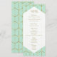 Menu de mariage géométrique or vert menthe en hexa