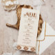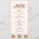 Un menu de mariage occidental moderne présentant des tons neutres chauds et des motifs audacieux inspirés du sud-ouest. Parfait pour les mariages à la ferme, dans le désert ou en plein air avec une atmosphère western semi-formelle.