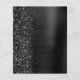Ce menu de mariage moderne élégant présente une bordure scintillante de faux diamants sur un fond en métal brossé noir. Le texte personnalisable combine une écriture manuscrite blanche et des polices sans serif. Le design en métal brossé noir et pailleté est répété au verso.