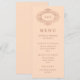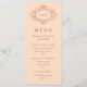 Cette carte de menu de mariage élégante présente un fond rose tendre orné d'un cadre en rose gold faux vintage orné. Vos initiales et le reste du texte apparaissent dans une couleur rose assortie.