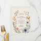 Élevez votre décor mariage avec ce menu rustique fleur sauvage de jardin à couronne. Parfait pour les mariages de jardin ou de boho, il présente d'élégants motifs floraux. Personnalisable et magnifiquement conçu pour compléter le charme naturel de votre événement.