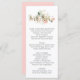 Menu de mariage stylisé avec fleurs en rose pêche