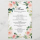 Élégant menu mariage botanique rose pâle / pêche ressort avec un bouquet de roses pastel douce aquarelle, pivoines et hydrangées dans les tons rose roux, pêche et crème avec feuilles botaniques verdoyants et feuilles d'eucalyptus. Un choix de design moderne qui conviendra parfaitement aux mariages du printemps et de l'été à la sauge rose vif. Veuillez me contacter pour plus de personnalisation ou de correspondance.