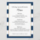 Carte de menu de réception pour assortir à votre papeterie de mariage Cape Cod. COULEURS avec des rayures bleu marine et une bordure intérieure or. Pour toute demande de modifications de conception personnalisées par le concepteur indépendant, veuillez envoyer un courriel à paula@labellarue.com AVANT de personnaliser ou de passer commande.