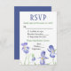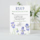 Une carte RSVP élégante avec des iris violets, ainsi que des options de repas sur le fond.