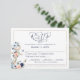 Magnifique carte de réponse de mariage sur le thème nautique, côtier ou de plage avec une ancre ornée de fleurs aquarelles dans des tons de bleu marine, pêche, bleu clair et blanc encadrés d'une bordure dorée champagne et d'une typographie calligraphiée élégante. Le design comporte votre texte personnalisé pour inclure les sélections de menu ou d'autres détails ou informations. ASSISTANCE : Pour obtenir de l'aide concernant la modification ou la personnalisation du design, le changement de couleur, le transfert du design sur un autre produit ou si vous souhaitez des articles coordonnés, contactez le designer AVANT DE COMMANDER via l'onglet MESSAGE de discussion Zazzle ou par courriel makeitaboutyoustore@gmail.com.