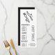 Un modèle de menu moderne et élégant pour un restaurant de cuisine moderne ou une soirée à thème pour les gourmets. Ce menu mignon comporte une illustration adorable de couverts gris foncé sur un fond blanc personnalisable. Le texte peut être personnalisé pour répondre à vos besoins. Thème noir et blanc