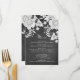 Dentelle florale rustique sur carte de menu du tableau de bord. Carte menu personnalisable avec dentelle blanche fleurie sur arrière - plan faux tableau. Personnalisé en ajoutant vos propres détails. Ce menu rustique est parfait pour des événements à thème rustique, bohème, automnale et vintage. Des éléments correspondants sont disponibles.