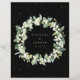 Un menu des boissons/bar de mariage hivernal noir. Avec une bordure de neige baies et d'eucalyptus peints à la main sur le devant et une couronne sur le dos. Tout le texte est entièrement modifiable, et les points dispersés sur le devant et le dos peuvent être supprimés avant de commander si vous le souhaitez. Articles de coordination également disponibles.