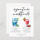 Cette carte chic signature plage mocktails propose une typographie noire simple au-dessus de 2 boissons balnéaires et leurs ingrédients pour votre fête côtière. Un délicieux lever de soleil hawaïen bleu et un dessin de fraise Daiquiri non alcoolisé ajoutent une touche cool à votre menu du bar. Complétez avec les noms du couple et la date de leur réception.