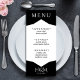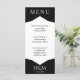 Carte de menu de réception mariage noir et blanc avec angles géométriques en blocs de couleur. Une typographie élégante pour un regard cher à un prix abordable. Customisez la liste des repas et les détails personnels. Idéal pour un thème mariage moderne minimaliste avec une touche de style.
