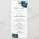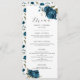 Elégante carte de menu mariage floral avec aquarelle illustration de fleurs de pivoines bleu marine avec verdure.
