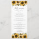 Carte de menu Rustique à mariage floral avec aquarelle illustrant des tournesols jaunes avec l'haleine du bébé.