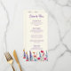 Faites-vous plaisir avec notre Fleur sauvage Symphony Double-Side Dîner et Bar Menu ! Avec les mêmes fleurs sauvages colorés qui ornent nos invitations, ce menu est aussi visuellement époustouflant que pratique. D'un côté, ravissez les papilles de vos invités avec un délicieux choix de dîners, des plats de viande alléchants aux délices végétariens salés. Chaque menu est élégamment présenté, reflétant les saveurs délicieuses de votre jour de mariage. Retournez le menu et vous trouverez une sélection de cocktails rafraîchissants et de boissons pour compléter votre repas. Qu'ils sirotent un simple cocktail ou qu'ils dégustent un verre de champagne frais, chaque boisson choisie ajoutera une touche de bonheur d'inspiration rustique à leur expérience culinaire. Avec des options personnalisables, vous pouvez adapter le menu à vos offres culinaires uniques et à votre thème mariage. Laissez notre Fleur sauvage Symphony Dîner à double face et Bar Menu être l'accompagnement parfait de votre réception, assurant que chaque aspect de votre mariage est un festin pour les sens!