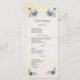 Menu Dîner Mariage moderne aux fleurs bleues et papillo