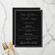 Cet événement moderne et élégant ou menu mariage est composé d'un simple arrière - plan noir au texte blanc. Les noms du couple sont imprimés dans une police de script. Vous pouvez personnaliser les menus avec vos propres options de restauration.