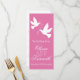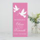 Double face simple deux colombes blanches avec deux rubans roses menu de dîner de réception de mariage. Uniquement conçu par Sarah Trett.