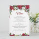 Menu Dîner mariage Rouge Poinsettia Floral