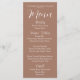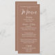 Carte de menu tendance mocha brun dîner couleur pour votre mariage qui présente un script blanc et stylisé avec vos informations personnalisées. Modifiez la carte de menu et remplacez le nom et la date du mariage ainsi que les éléments du menu qui seront servis à la réception de votre mariage. Sélectionnez votre style de carte de menu selon vos besoins.
