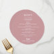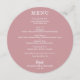 Une carte de menu ronde sur rose poussiéreux (ou toute couleur) et des lettres chic en blanc vous permettra de choisir votre menu. Parfait pour une réception de mariage moderne, un dîner de répétition mariage, une fête d'anniversaire ou tout événement spécial avec un dîner assis. Choisissez N'IMPORTE QUEL ARRIÈRE - PLAN DE COULEUR, N'IMPORTE QUEL TEXTE DE COULEUR, N'IMPORTE QUELLE POLICE ! Personnalisez facilement votre menu et vos détails pour le dîner.