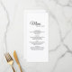 Ce menu simple de calligraphie noir et blanc propose un élégant luxe mais moderne à la fois à une réception de mariage minimaliste et plus traditionnelle ou formelle. La calligraphie décontractée permet une sensation d'antiquité, tandis que le design neutre et élégant peut être combiné avec tous les aspects uniques de votre célébration de mariage.