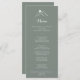 Cette carte de menu de montagne en silhouette verte et blanche est parfaite pour un mariage rustique. Le design comprend des montagnes claires peintes à la main. Ce menu peut être utilisé pour une réception de mariage, un dîner de répétition, une douche nuptiale ou tout événement.