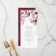 Des arrangements de feuillage délicats avec de petites accents de fleurs dans des tons crème doux et rêvés, taupe et rose avec des éclaboussures de parties scintillant bordeaux et des dispositions uniques de design font de cette collection une collection passionnante, surtout pour les mariages d'automne. Le menu de réception de mariage présenté ici présente une bordure feuillue sur le devant supérieur et une texture bordeaux et aquarelle profonde sur le dos. Ajoutez vos sélections de menu, vos initiales et la date du mariage à l'aide du modèle fourni. Visualisez le lien de collection sur cette page pour voir tous les éléments correspondants dans cette belle conception ou recherchez ID817 pour voir d'autres pièces et choix de couleurs pour cet ensemble.