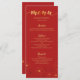 Carte de menu de dîner de mariage avec un motif de fleurs de cerisier rouges et dorées.