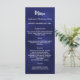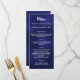 Carte de menu de dîner de fête de Noël. Personnalisez et ajoutez un nom/événement, une date et le menu. Un fond bleu foncé, bleu marine, texte blanc. La couleur bleue est inégale.