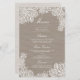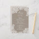 Un élégant et vintage burlap et dentelle design de menu mariage par Shelby Allison.
