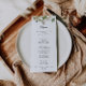 Cette carte de menu pour le dîner au feuillage vert d'or tropical est parfaite pour un mariage rustique. Le design est magnifiquement peint à la main avec de l'or tropical d'été et du feuillage vert illustrés. Ce menu peut être utilisé pour une réception de mariage, un dîner de répétition, une douche nuptiale ou tout événement.