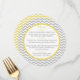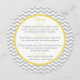 Un petit menu rond est proposé par un motif gris et jaune zig zag ou chevron. Personnalisez le texte comme préféré et ajoutez le nom ou le monogramme de la mariée et du marié à l'arrière.