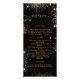 Programme de fête d'anniversaire et carte de menu. Personnalisez et ajoutez un nom, un âge, une date, un programme du jour et le menu. Un arrière - plan noir chic, décoré avec de la poussière de parties scintillant imitation. Lettres de couleur dorée.