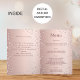 Un fond dégradé or rose faux avec des diamants roses. Texte de bienvenue, photo, programme, menu et un mot de remerciement au verso.