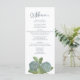 Un élégant bouquet fleuri bleu hydrangée botanique bouquet vert élégant Dinner Menu. Un merveilleux ajout à votre table de réception de mariage. Faites savoir à vos invités ce qui se trouve dans le menu du dîner avec un élégant design classique de fleurs bleues.