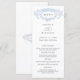 Elegant dusty blue floral line art wedding flat menu featuring a minimalist botanical wreath design, ideal for modern and classic wedding reception tables.