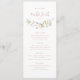 Elégant design délicat fleur sauvage de couleur aquarelle, avec personnalisation votre propre nom d'hôte. Palettes pastel de rose pâle, blanc cassé, beige, bleu poussiéreux, rose poussiéreux, verdure botanique, sobre et romantique. De superbes menus à fleurs mariage pour mariage rustique moderne, mariage de jardin de campagne et mariage boho au printemps et en été.