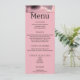Rose Duisy et noir, moderne, simple menu Mariage. Tons de couleur rose, pêche et rose poussiéreux. Cette élégante carte de mariage présente un élégant texte noir sur un arrière - plan abstrait rose poussiéreux. Un design graphique aquarelle design contemporain est parfait pour votre mariage élégant.