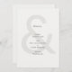 Featuring a refined typographic layout with a subtle ampersand background, this wedding menu card presents courses in a clear, elegant, and contemporary format. Its minimalist design pairs perfectly with editorial-style wedding invitations, details cards, and ceremony programs for a cohesive stationery suite.