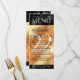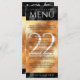 Ajoutez de la sophistication aux célébrations du 22ème anniversaire du mariage de cuivre avec ce menu du dîner, qui comprend des lettres élégantes et des confettis hexagonaux sur feuille de cuivre et arrière - plans noirs. Customisez avec le nom du couple, la date du mariage, les détails du lieu, les menus et les messages de félicitations. Design © W.H. Sim. Voir plus sur zazzle.com/expressionsoccasions