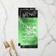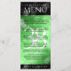 Ajoutez de la sophistication aux célébrations du 38e anniversaire du mariage émeraude avec ce menu du dîner, qui comprend des lettres élégantes et des confettis hexagonaux sur arrière - plans vert émeraude et noirs. Customisez avec le nom du couple, la date du mariage, les détails du lieu, les menus et les messages de félicitations. Design © W.H. Sim. Voir plus sur zazzle.com/expressionsoccasions