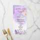 Ajoutez une touche d'enchantement à votre journée spéciale avec le menu Elegant Blue Butterfly Rustic Watercolor Mariage. Ce design étonnant présente des papillons monarques mauve et délicats qui flottent gracieusement au milieu des fleurs de lavande et d'or rose, créant une atmosphère rustique charmante. Les teintes molles lilas et turquoise se marient harmonieusement avec d'élégants effets d'aquarelle, ce qui le rend parfait pour un mariage de conte de fées, baby shower, quinceañera, ou fête douce de 16 ans. Le script de calligraphie moderne en argent et noir apporte une touche sophistiquée, tandis que le design d'inspiration vintage évoque une élégance intemporelle. Idéal pour les brunchs du printemps et de l'été, cette carte menu est un complément économique mais beau à votre papeterie mariage, parfait pour une célébration de conte de fées sur le thème des princesses.